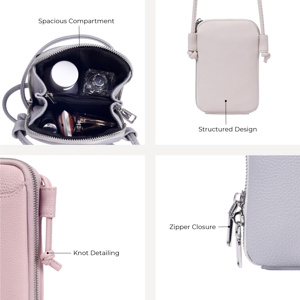 Inside, find a spacious main compartment with an interior slip pocket to keep your items organised. The slim front flap closes securely with a magnetic clasp, while dual zippers add extra security. Gold-tone hardware lends subtle elegance without overpowering the bag’s refined simplicity. Lightweight and easy to care for, Harper is a versatile companion that fits effortlessly into your everyday wardrobe.