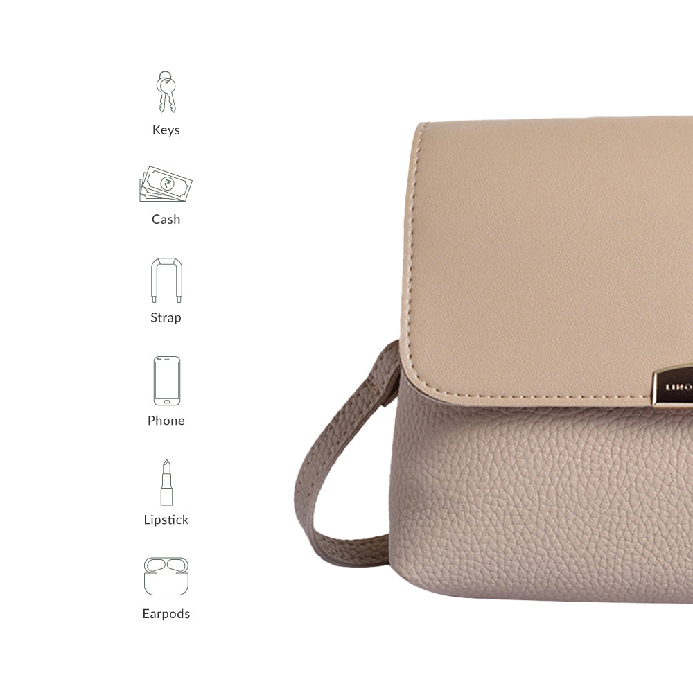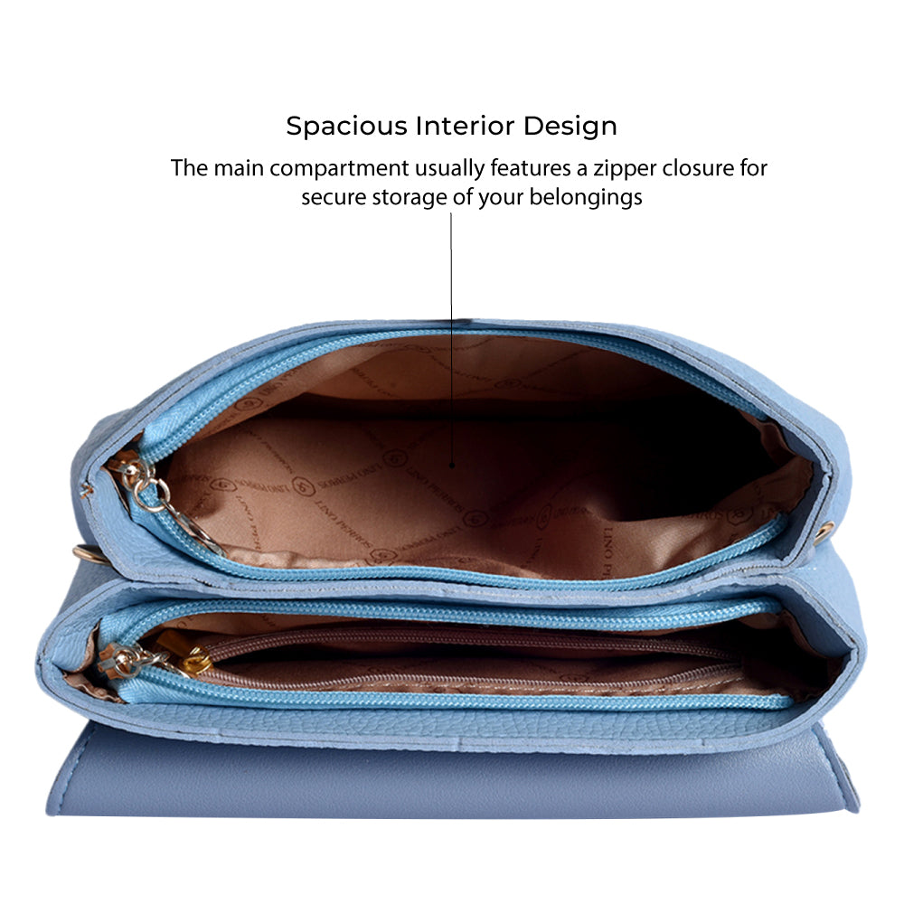 The flap with snap closure and three zip pockets keep your essentials organized and secure, while the adjustable leatherette and chain strap ensures a comfortable crossbody fit. Perfect for casual outings, it holds your phone, wallet, keys, and more with ease, blending practicality with a clean, modern look.