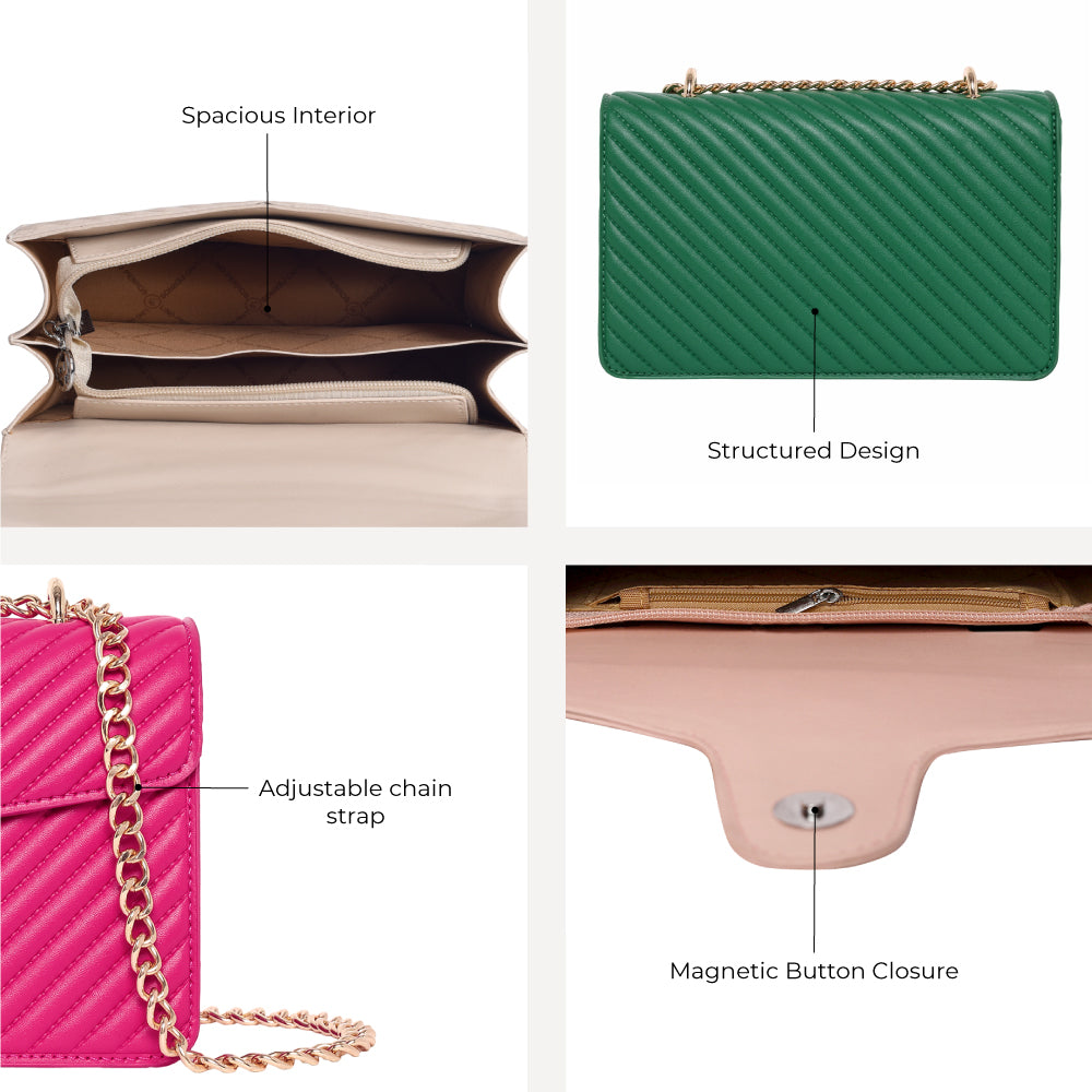Elevate your fashion game with our stunning Structured Quilted Shoulder Bag. Impeccably crafted with a classic quilted pattern, this bag exudes timeless elegance. Its sleek design, spacious interior, and comfortable shoulder strap make it a perfect blend of style and functionality. Whether it's a casual outing or a special event, this shoulder bag is the ultimate accessory to complement your every look.