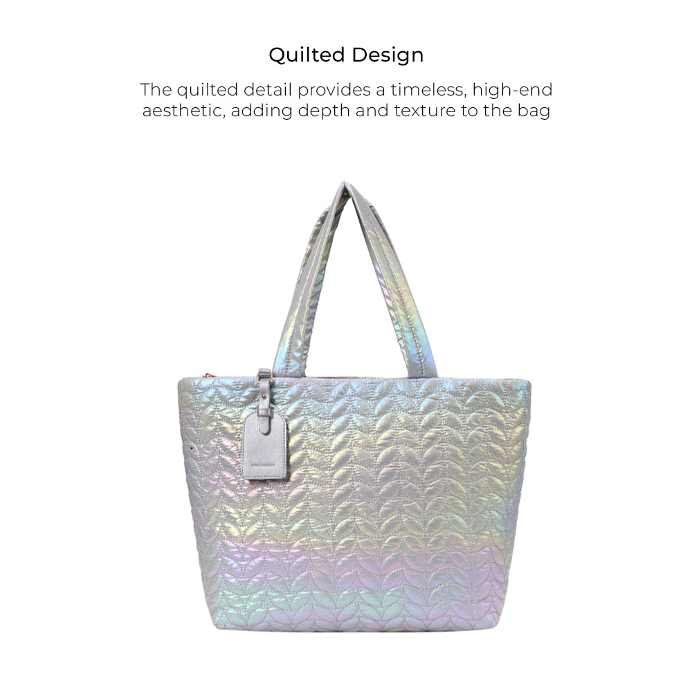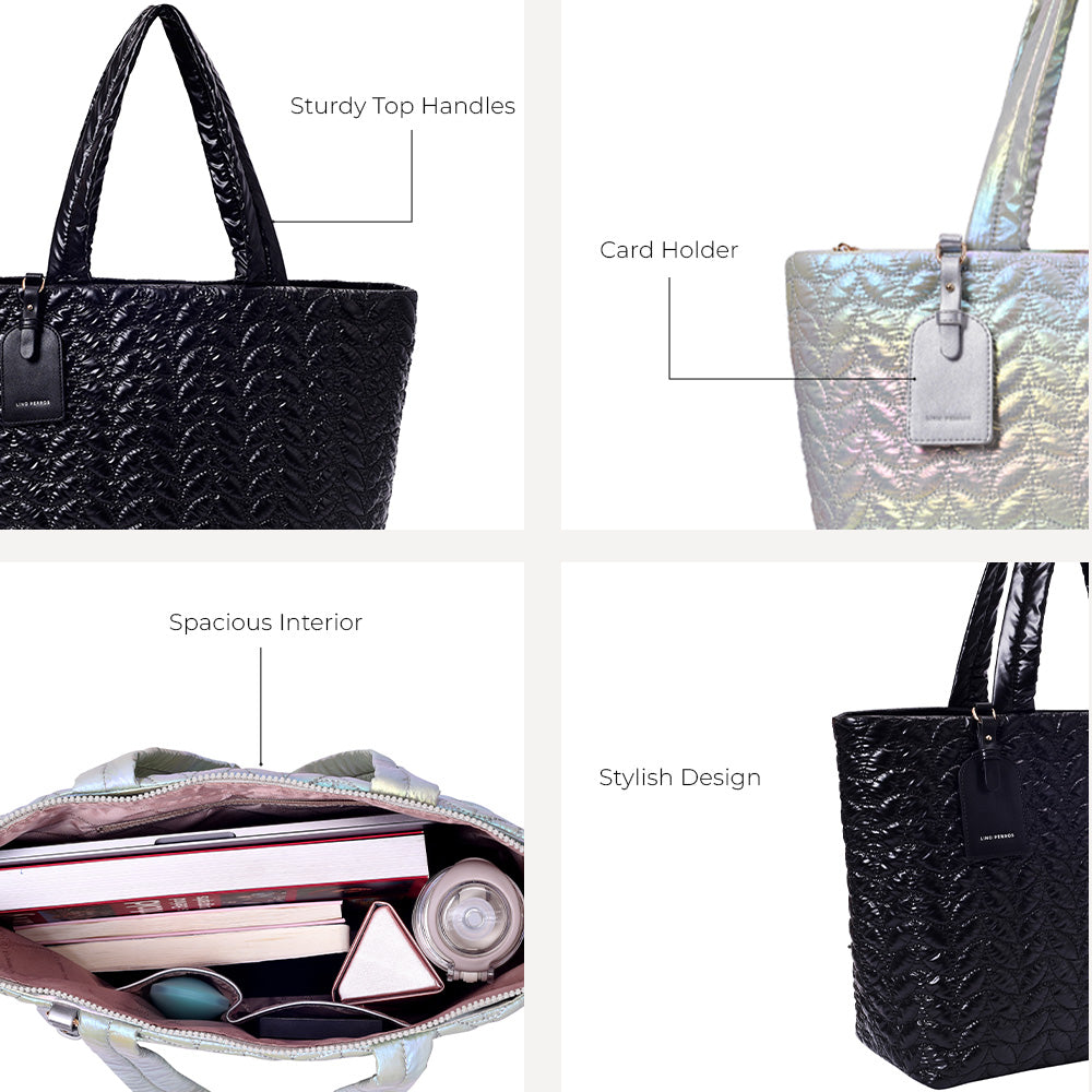 This shiny tote bag offers a perfect mix of style and practicality. Its sleek, glossy finish adds a modern touch, while the durable, lightweight design makes it ideal for everyday use. With a spacious interior, sturdy handles, and a secure zip closure, it easily holds all your essentials. Water-resistant and effortlessly chic, it’s perfect for work, the gym, or weekend getaways.