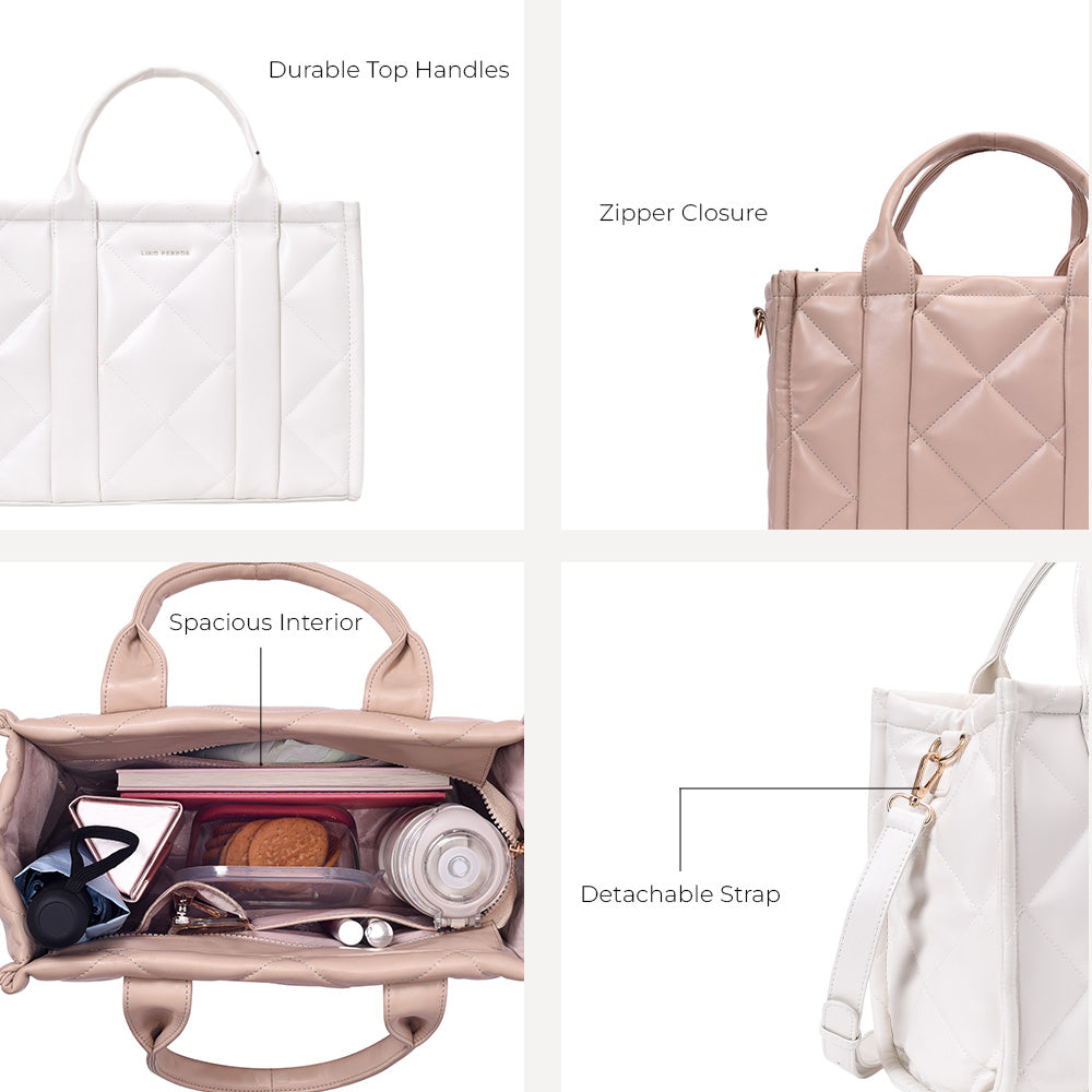 This elegant quilted tote is the perfect accessory for any occasion. With a soft texture and spacious interior, it easily holds your essentials, while a secure zipper keeps them safe. Sturdy handles make it ideal for work, shopping, or weekend outings—combining chic style and practicality.