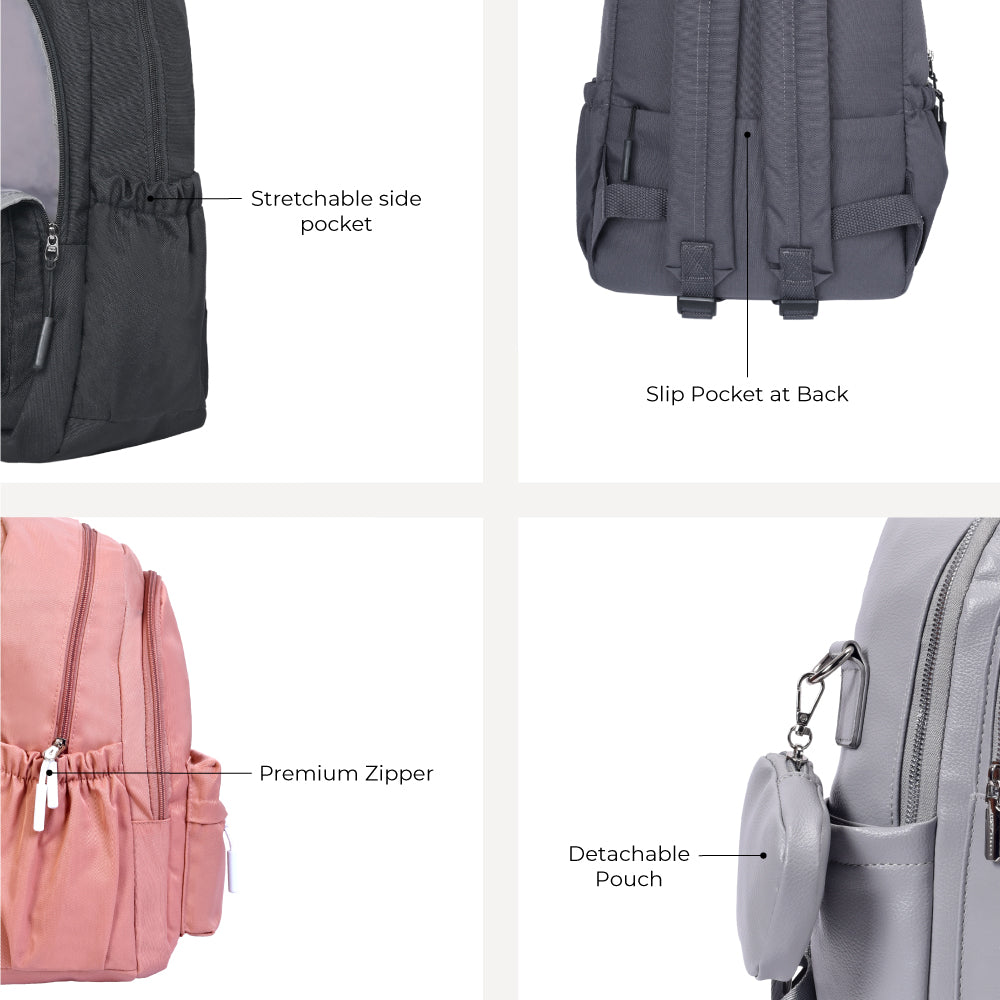 The stylish latest women backpack has a beautiful color and features multiple compartments.