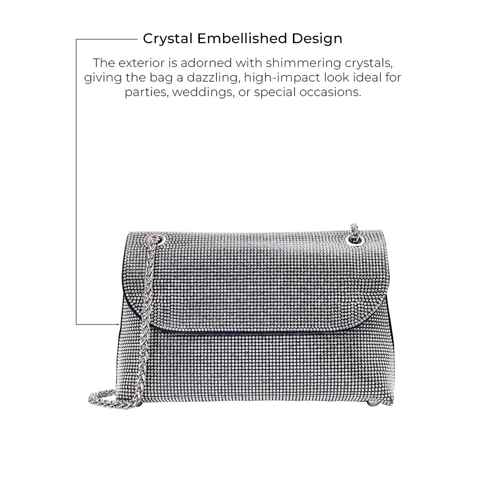 Step out in style with this dazzling shiny evening shoulder bag. Its exquisite embellishments add glamour to any outfit, perfect for special occasions. With an adjustable strap for shoulder or crossbody wear and a compact interior for essentials, this bag combines sophistication and practicality, making it a must-have for your next night out.