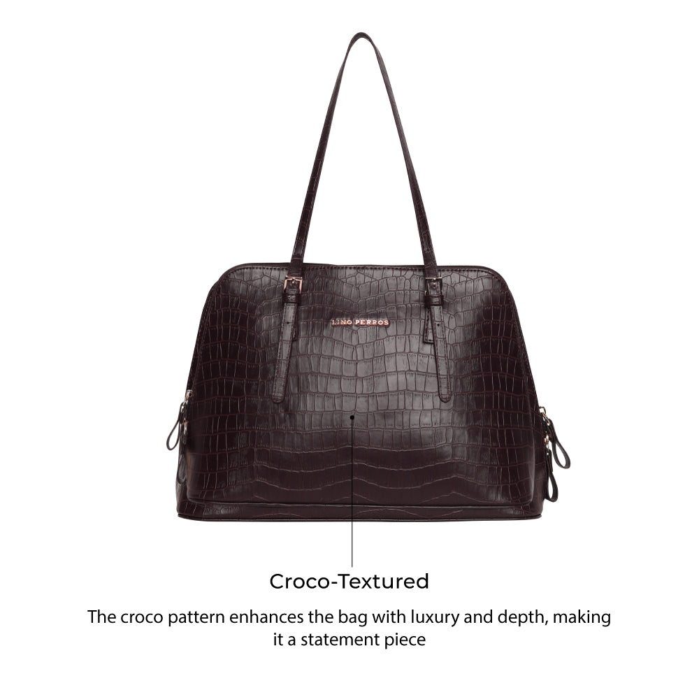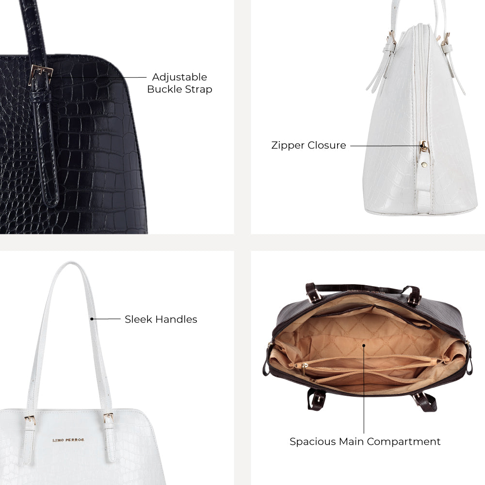 Beautiful leatherette and polished hardware polish this sophisticated satchel. A design worth carrying. Beautiful silhouette and material adds on to its premium structure.
