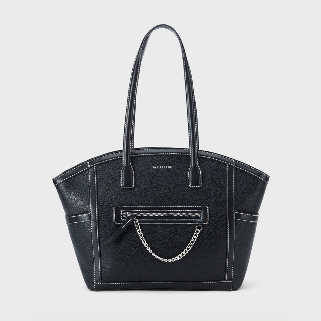 With a bold chain detail on the front, this tote brings a fashionable twist to everyday styling. The structured base and eye-catching hardware make it perfect for both workwear and lunch outings, offering a balance between glam and practicality.
