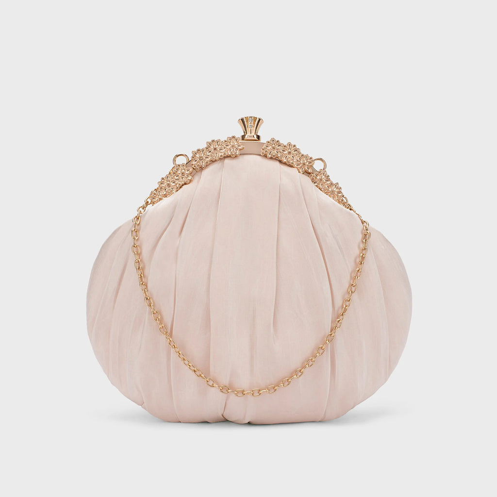 The Texas Faye Clutch brings a modern twist to the classic potli. With its gathered silhouette and shimmering finish, it’s designed to sit lightly in your hand while adding a touch of festive elegance to any evening look.