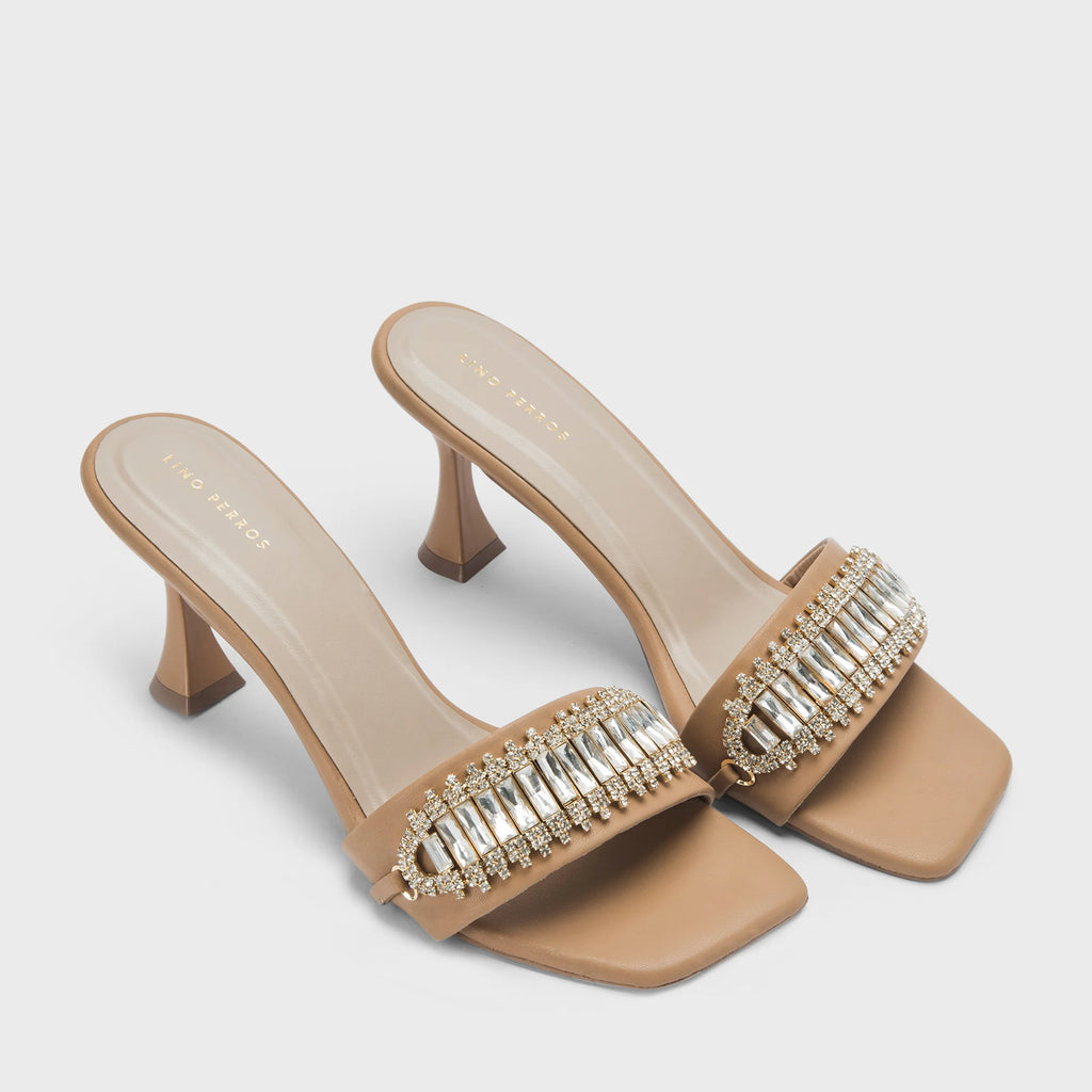 Crafted with a smooth nude base and a statement strap embellished with textured detailing, the design adds a hint of glamour while maintaining a soft, sophisticated aesthetic.